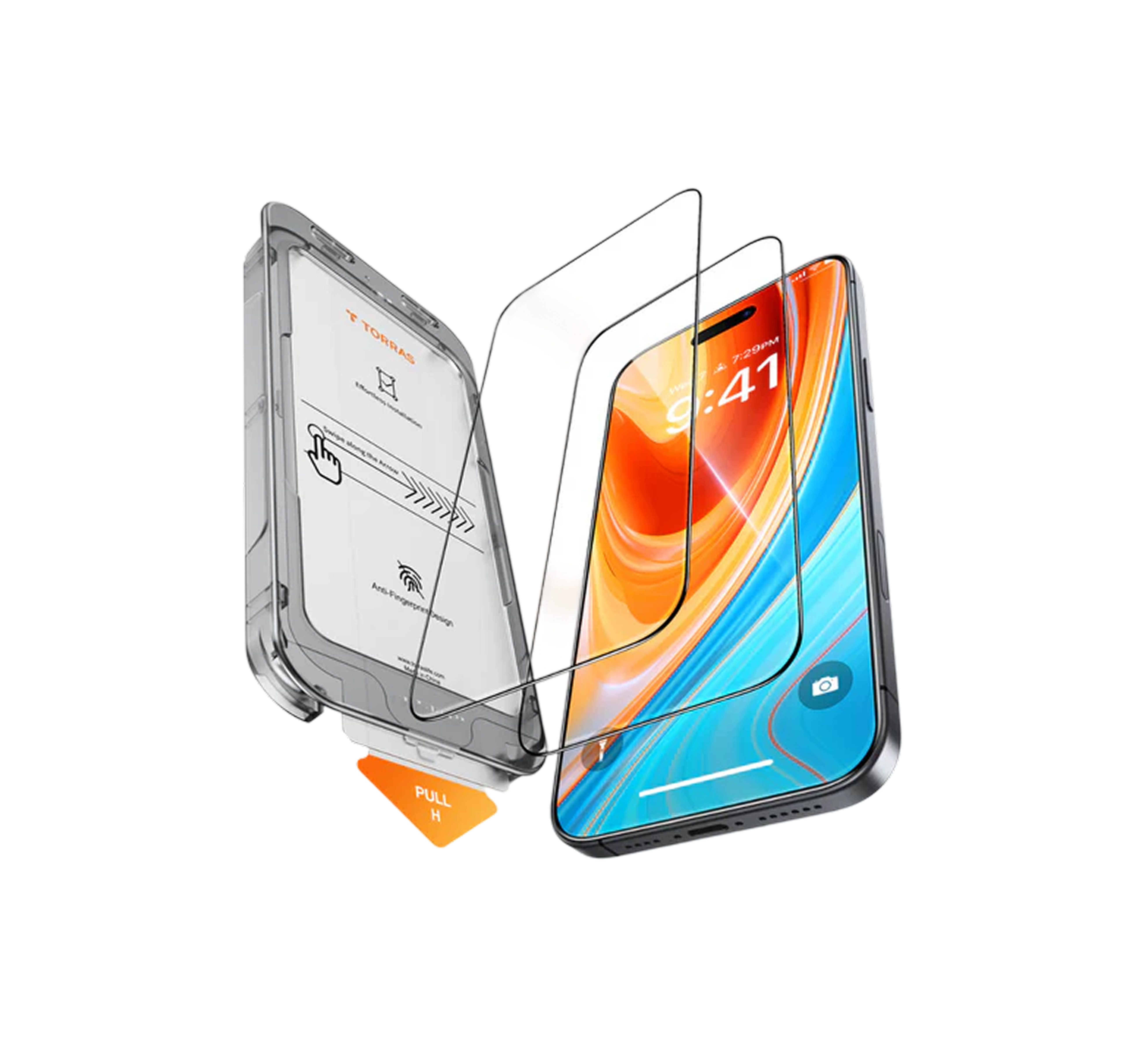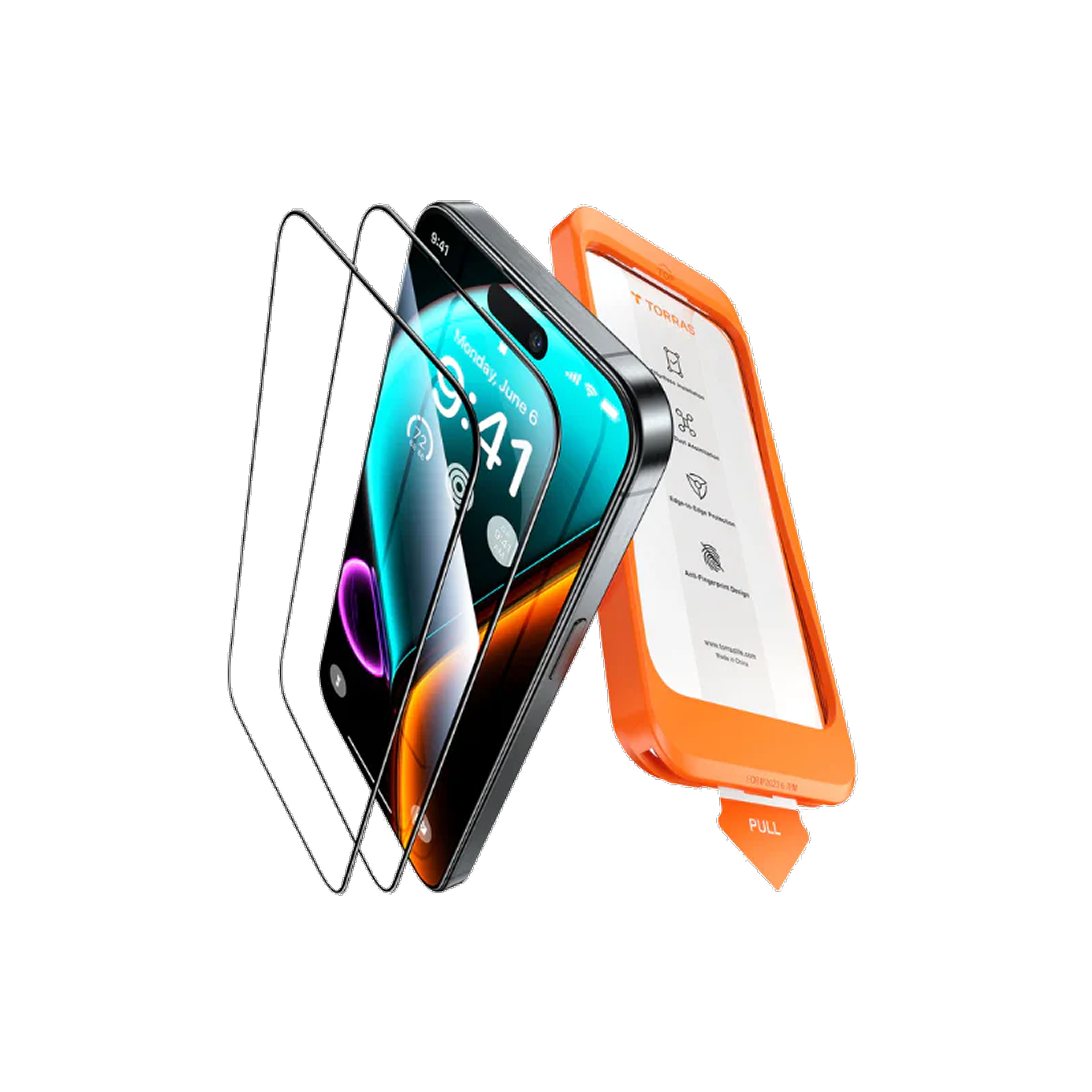 TORRASのiPhone用ガラスフィルムは強化ガラス製で、高い耐衝撃性があり、落下や衝撃から画面を保護します。薄さにこだわりつつ強度を確保し、タッチ感度もそのまま。専用フレーム付属で気泡なく簡単に貼れ、万が一割れても安全設計です。