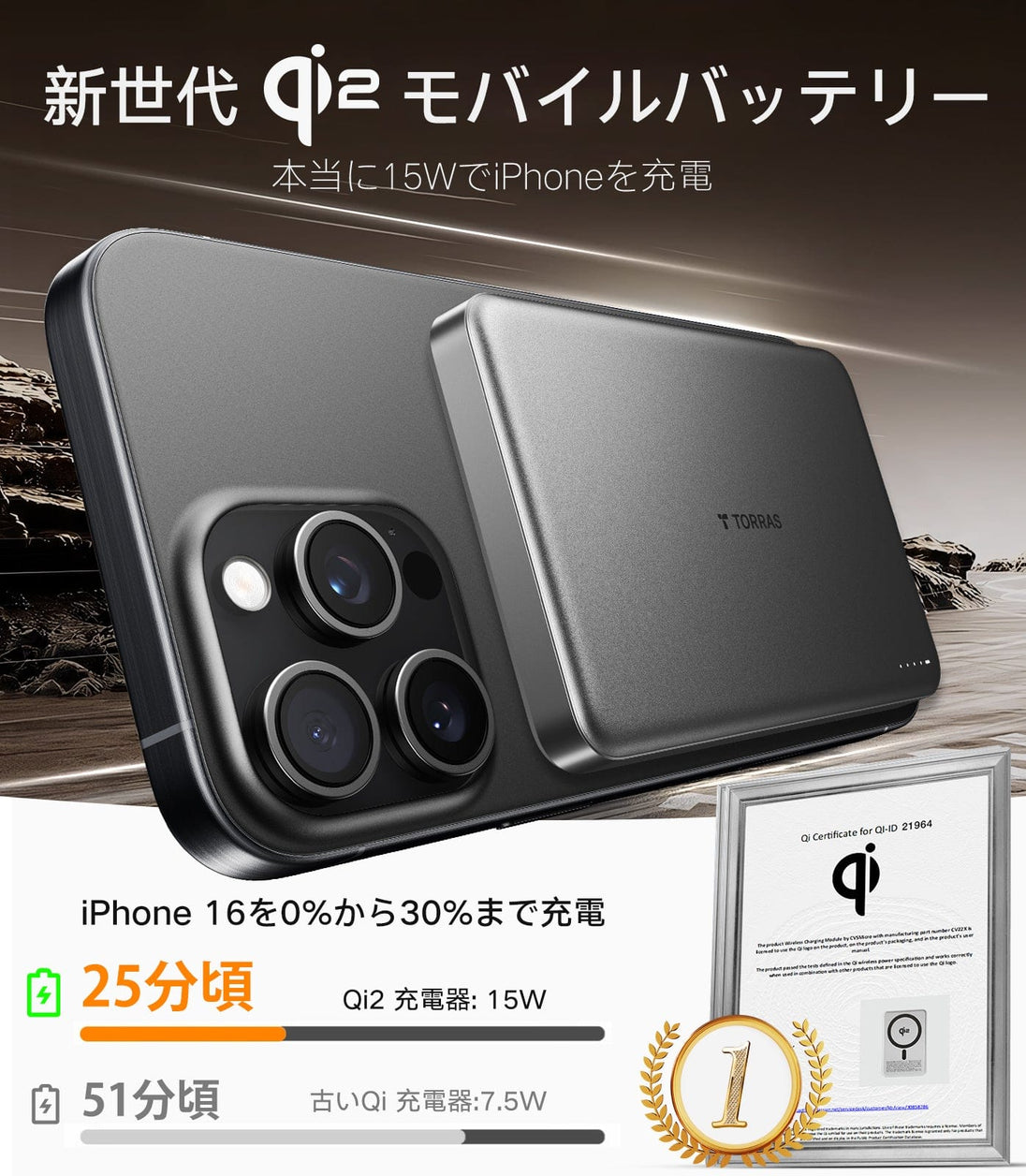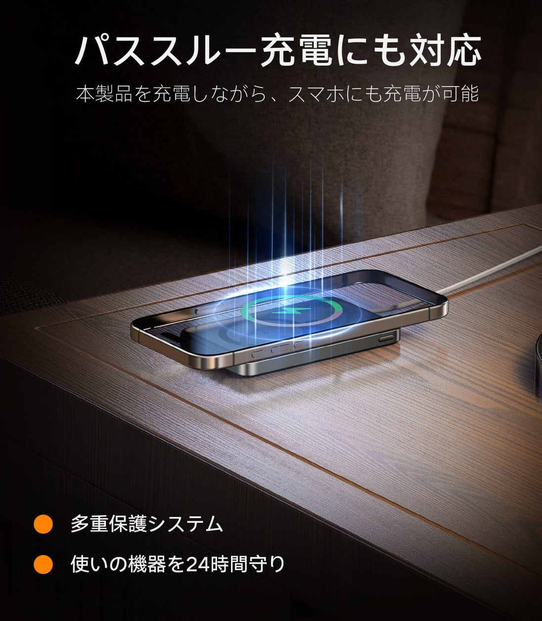 磁気で吸着し、ケーブルレスでスムーズに充電可能。
