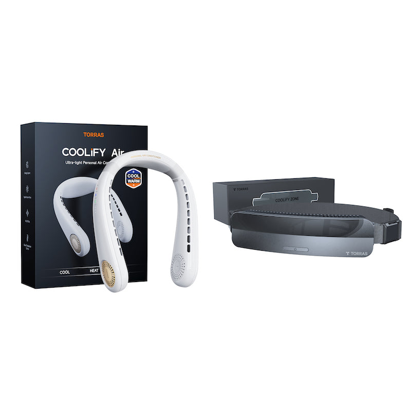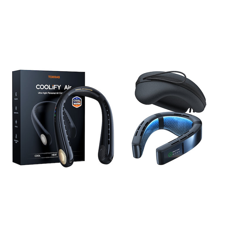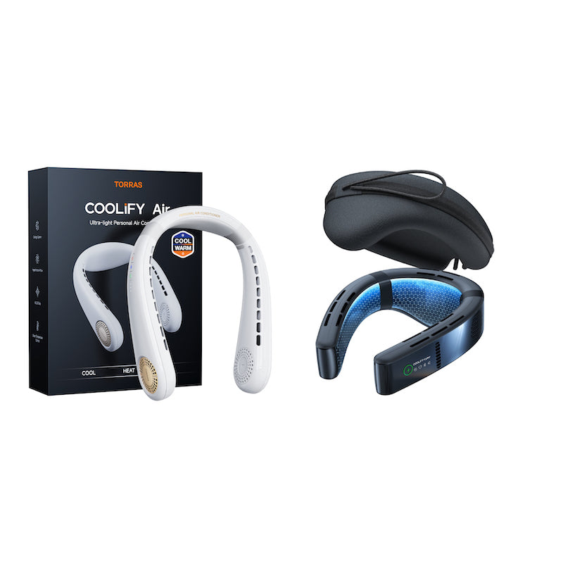 COOLiFY Airは、オシャレで実用的なウェアラブルエアコン入門モデル。軽量で冷却性能抜群、コスパも良し。初めての方や、日常の快適さを求める方に最適。旅行や出張、カフェでの読書にもぴったりです。「半導体冷却プレート構造により、体感温度が10度以上下がる」