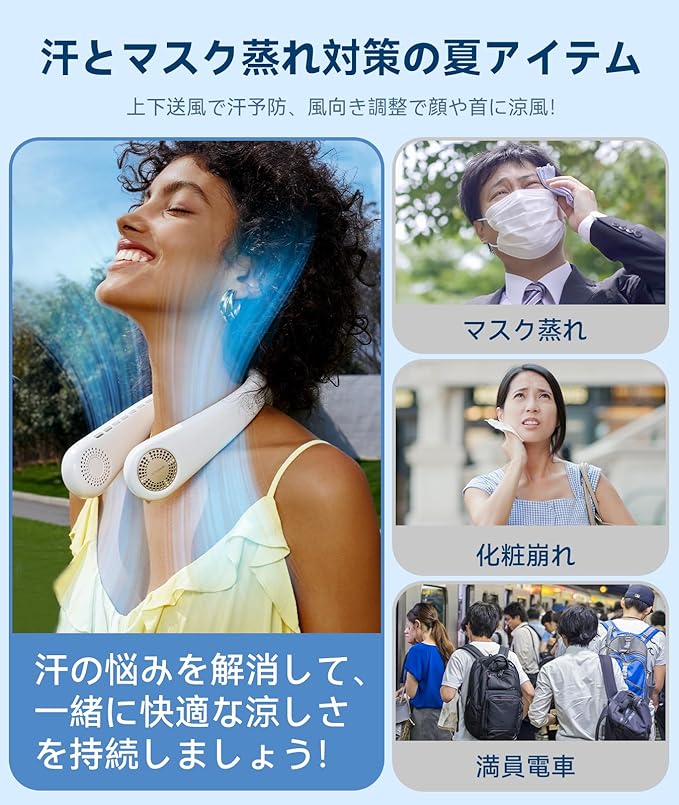 COOLiFY Airは羽根なしデザインで、髪の巻き込みを心配無用。ロングヘアやヘアアレンジを楽しむ方も安心して使えます。ジョギングやフィットネス中も髪の絡まりを気にせず快適に。安全で快適な冷却体験を提供し、スタイリッシュな外観と機能性を両立。