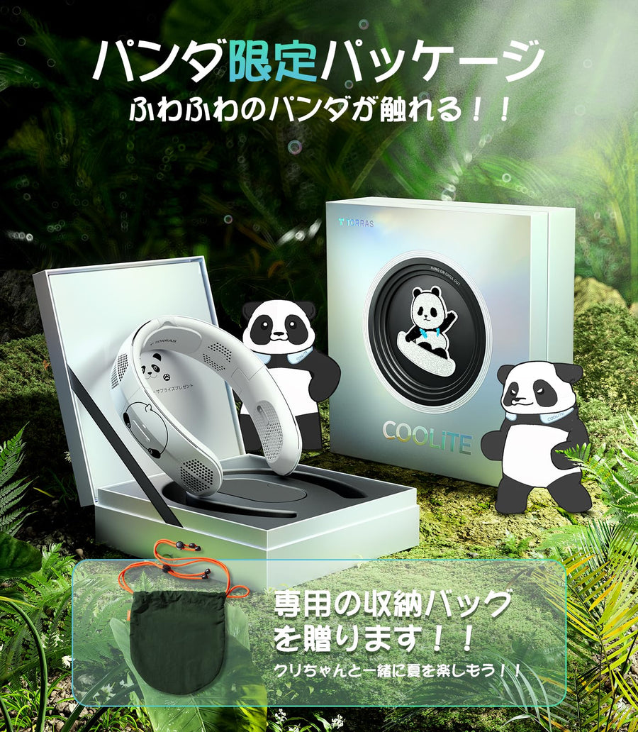 COOLiTE パンダ限定・折りたたみ式首掛け扇風機