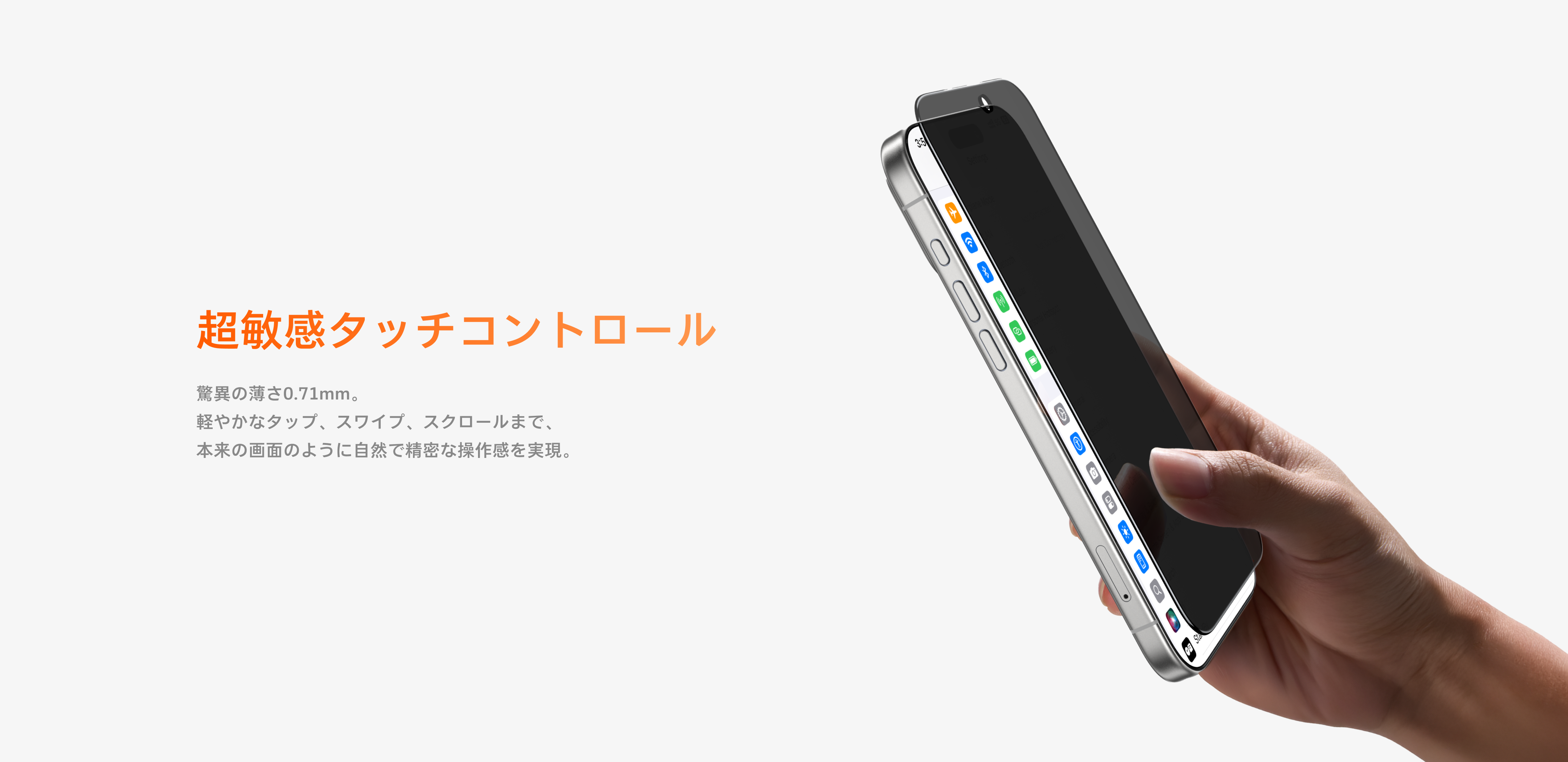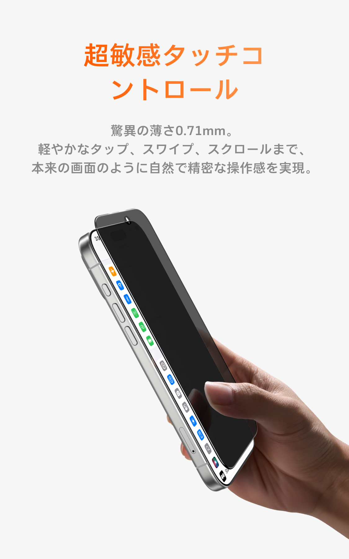 - TORRAS独自開発の強化ガラスが、うっかり落とす衝撃や擦り傷から、あなたのスマホを守る最後の砦です。