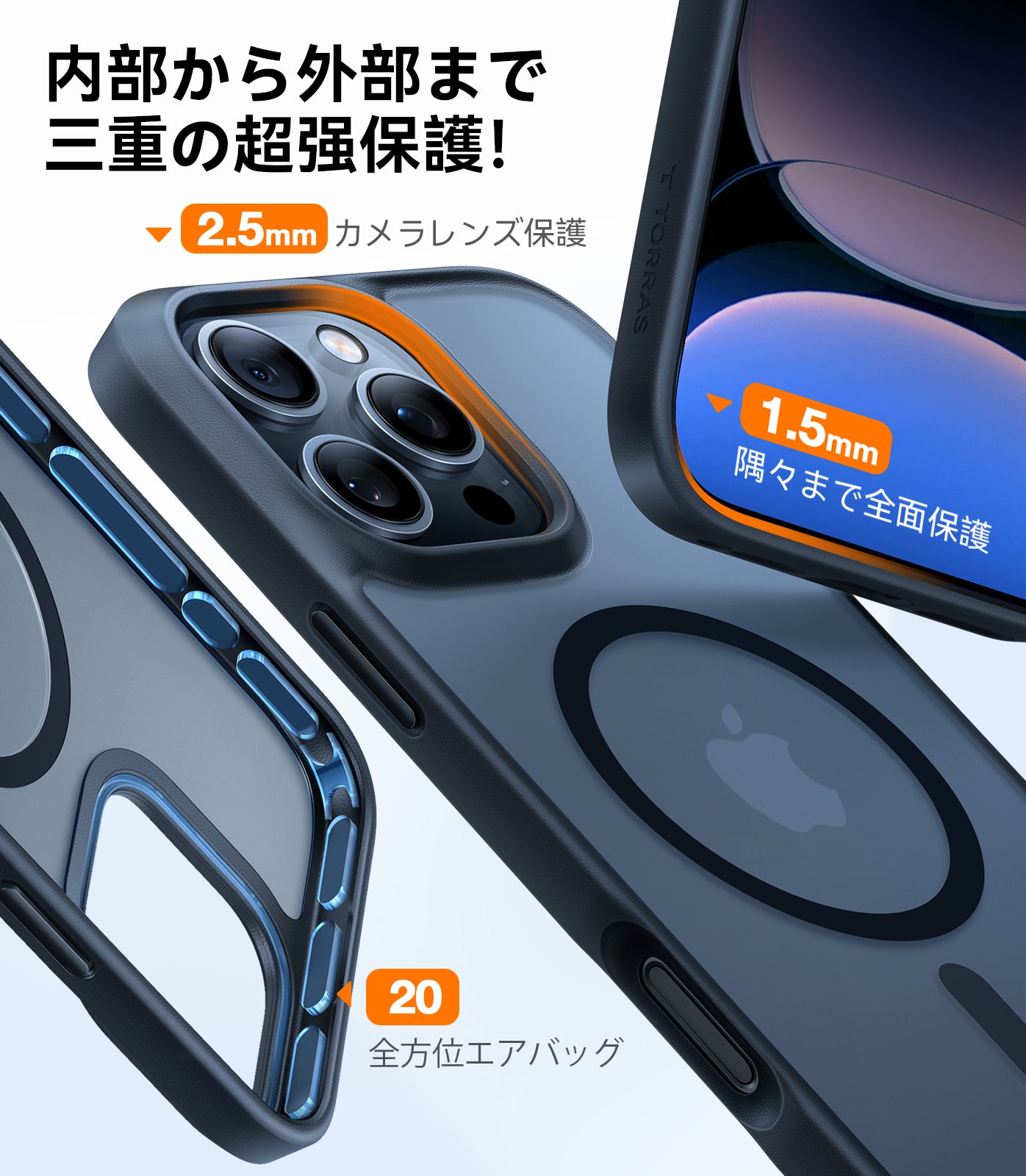 - 特別な磁力強化設計により、MagSafeアクセサリーとの吸着力が向上し、無損失でのワイヤレス充電を実現。