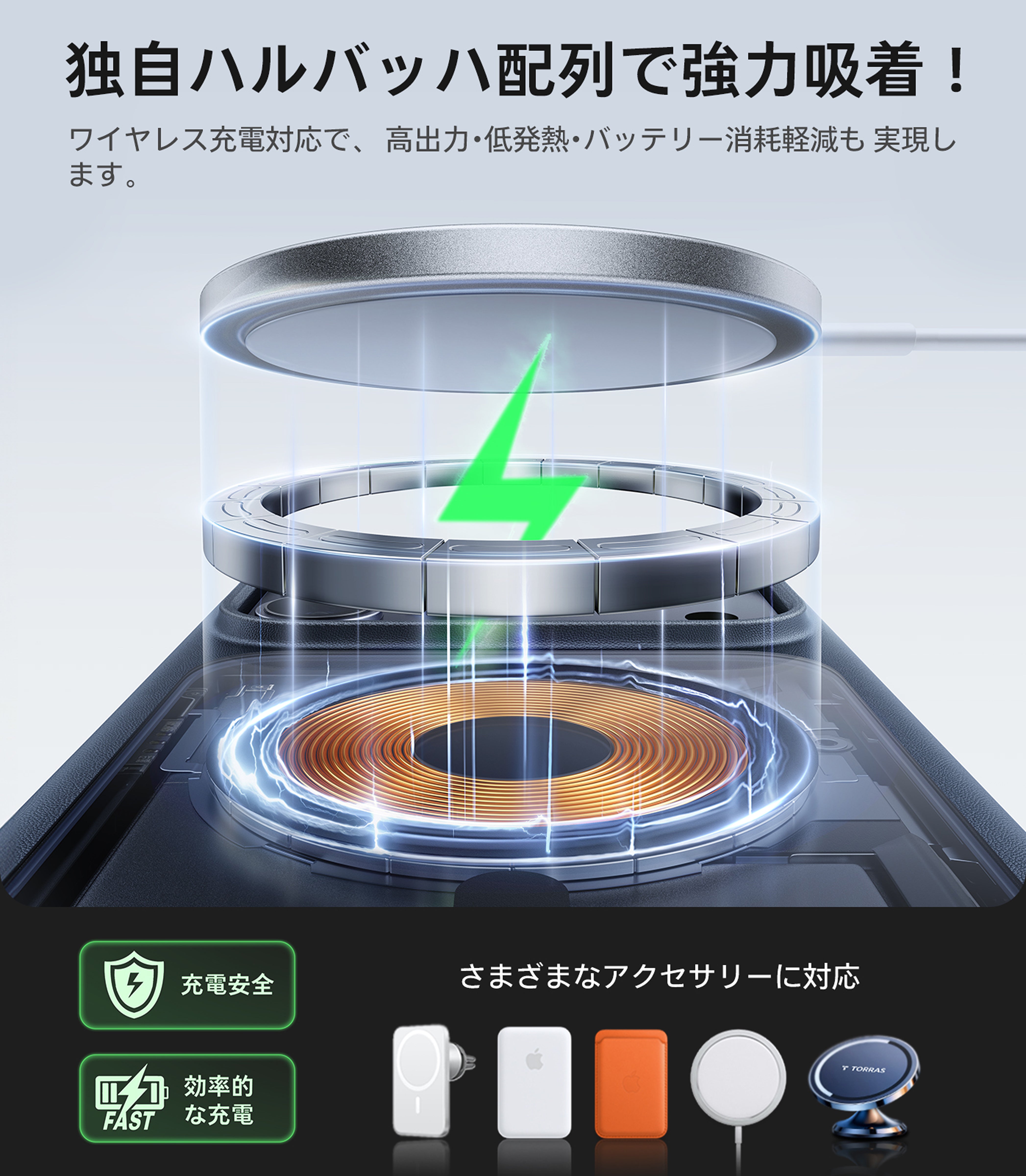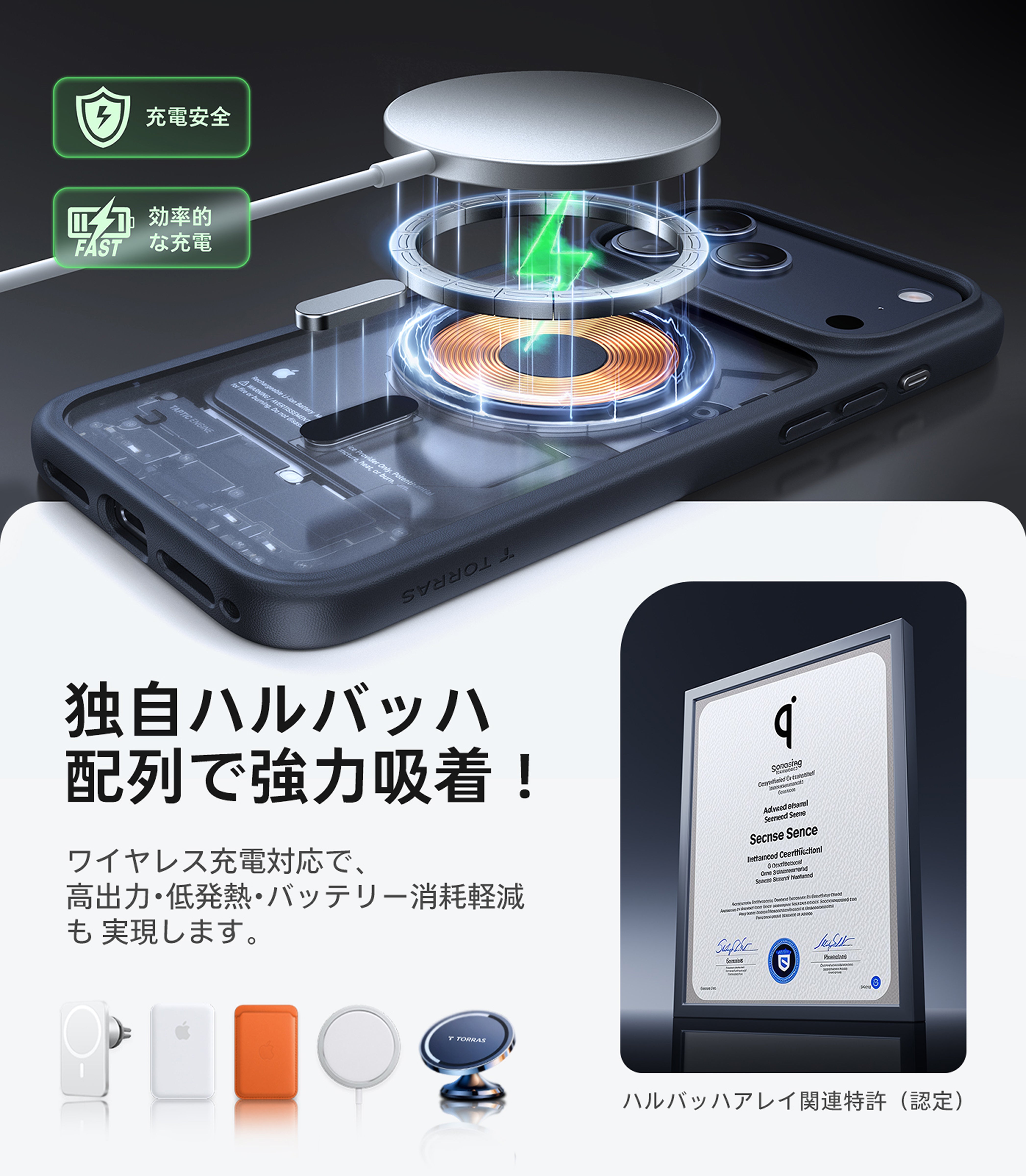 - ワイヤレス充電対応で、高出力·低発熱·バッテリー消耗軽減も実現。