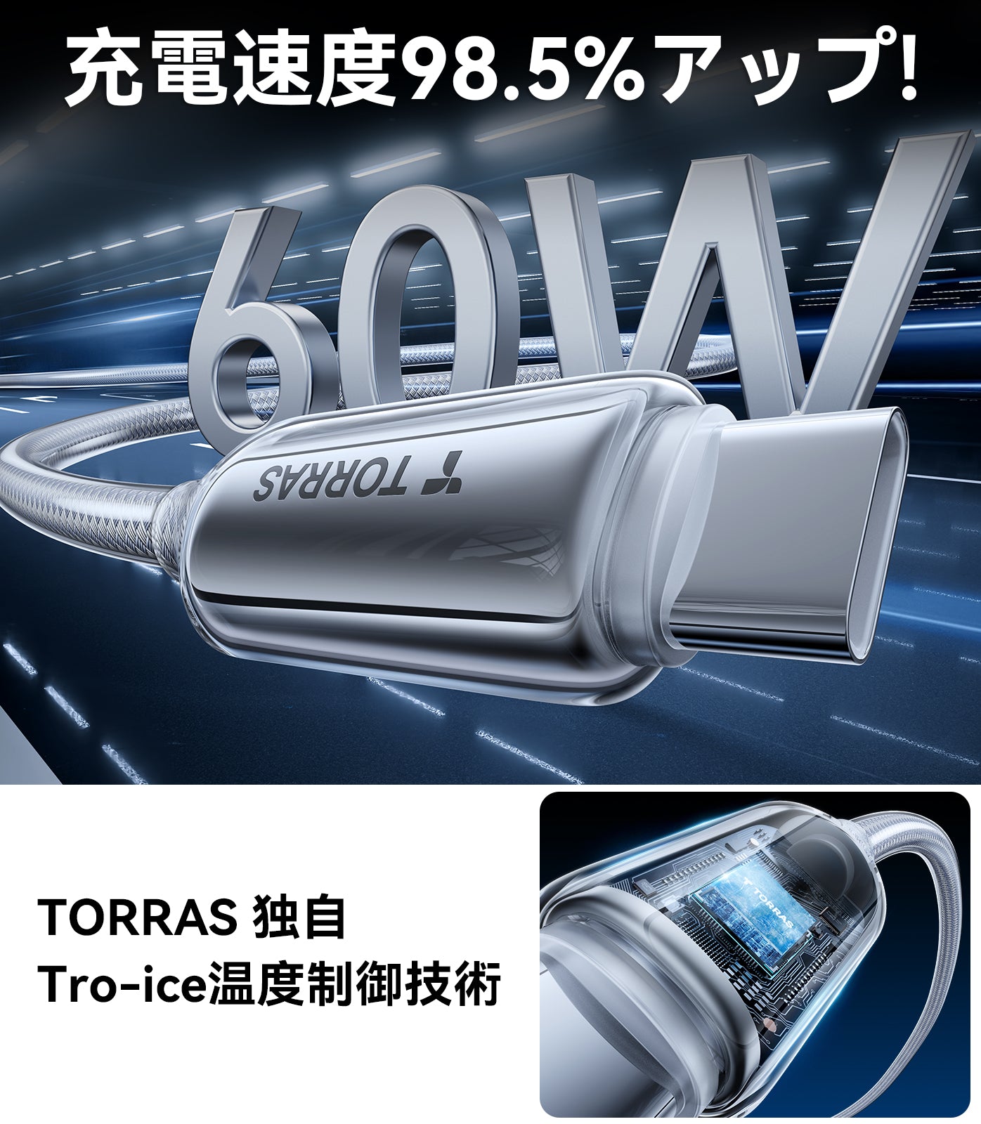 - 高速充電・データ転送最大60WのPD対応で、高速充電と最大480Mbpsのデータ転送が可能です。2GBのファイルを約33秒で転送できます。