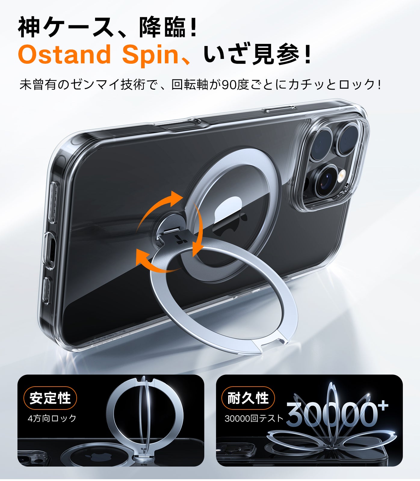 iPhone 16 Plus Ostand Spin ゼンマイ式スタンドケース