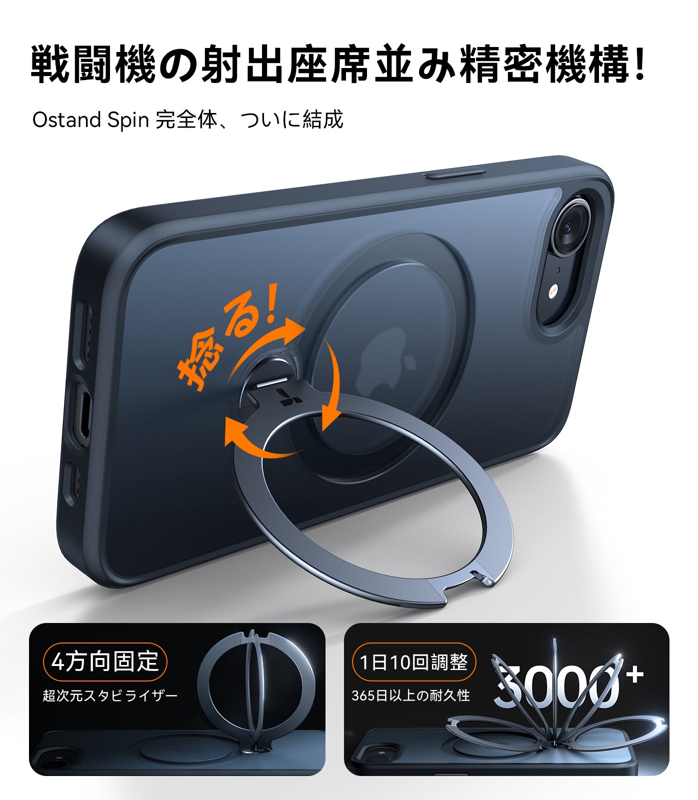 iPhone 16e 用 Ostand Spin ゼンマイ式スタンドケース