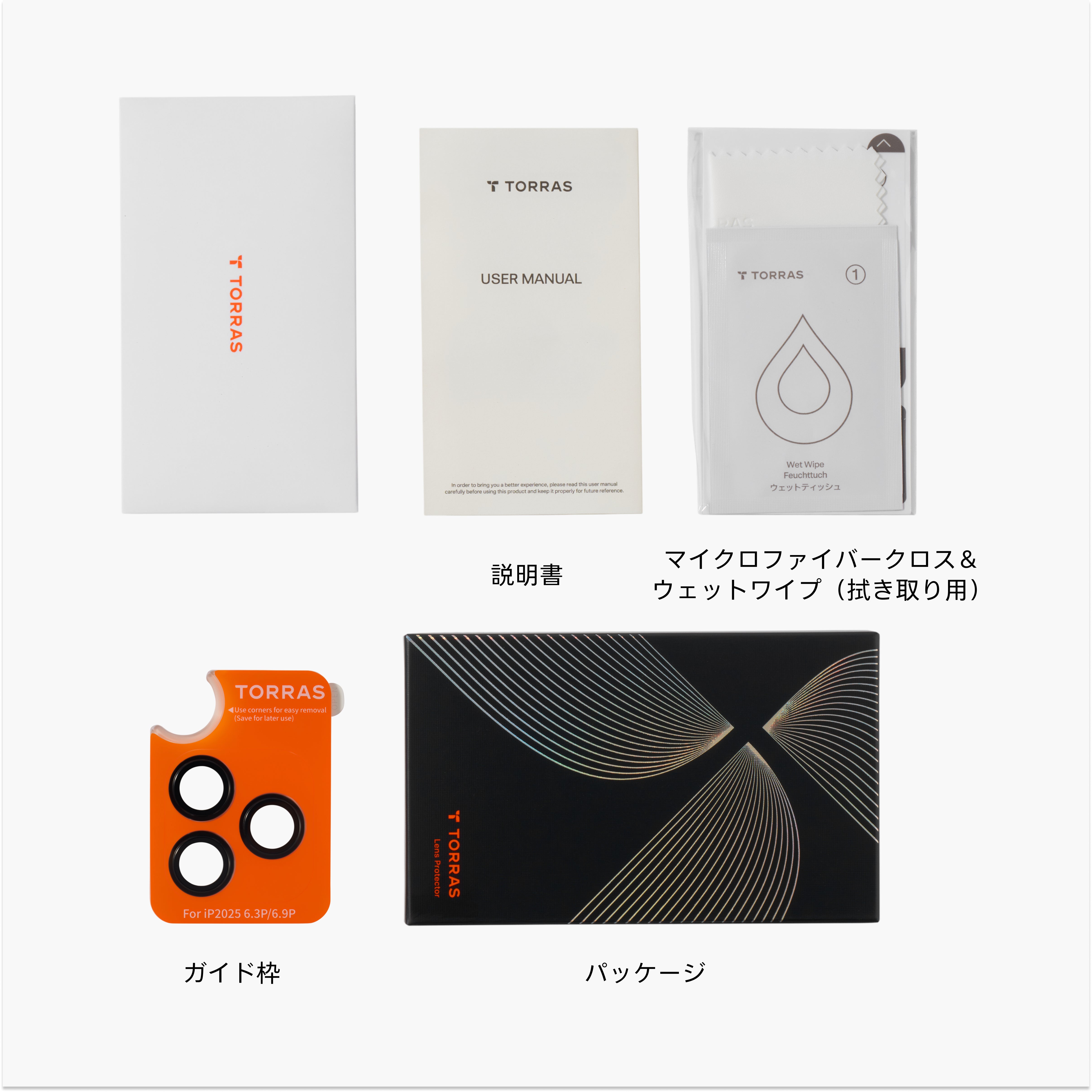 - 極薄なのに、レンズを傷からしっかり守る。 貼り付けキット付き、押すだけで貼れる。
