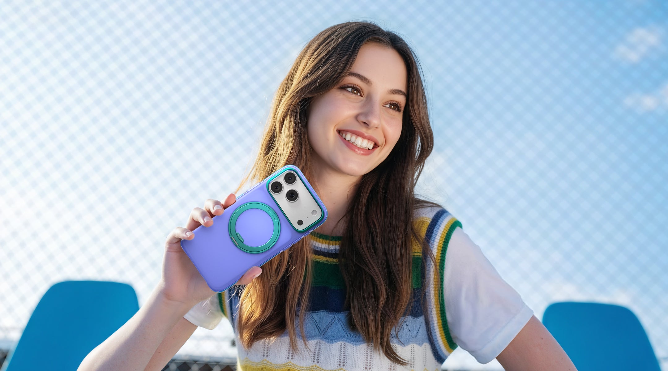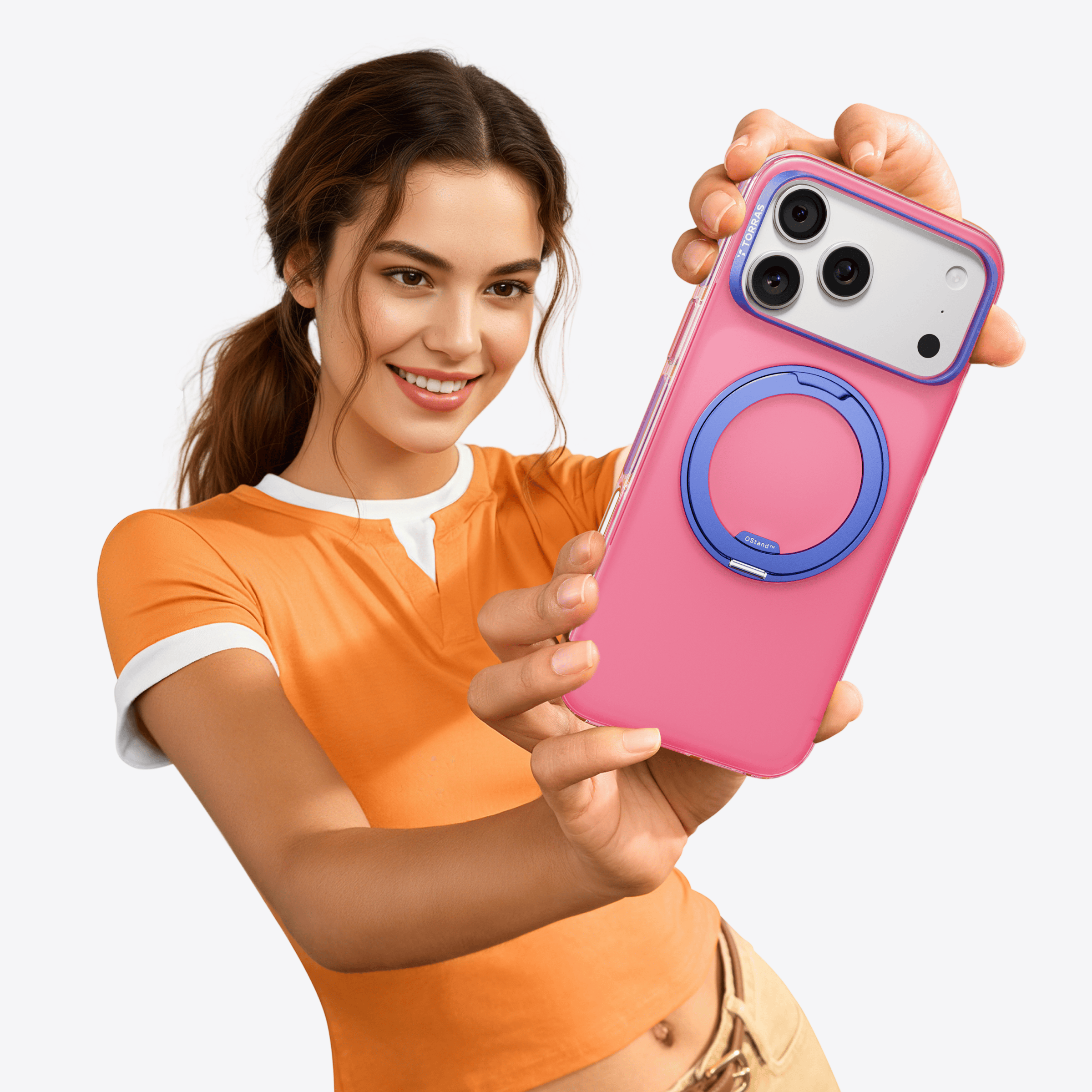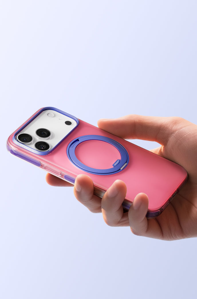 - ゼンマイ式スタンドで自由な角度調整と充電をサポート。