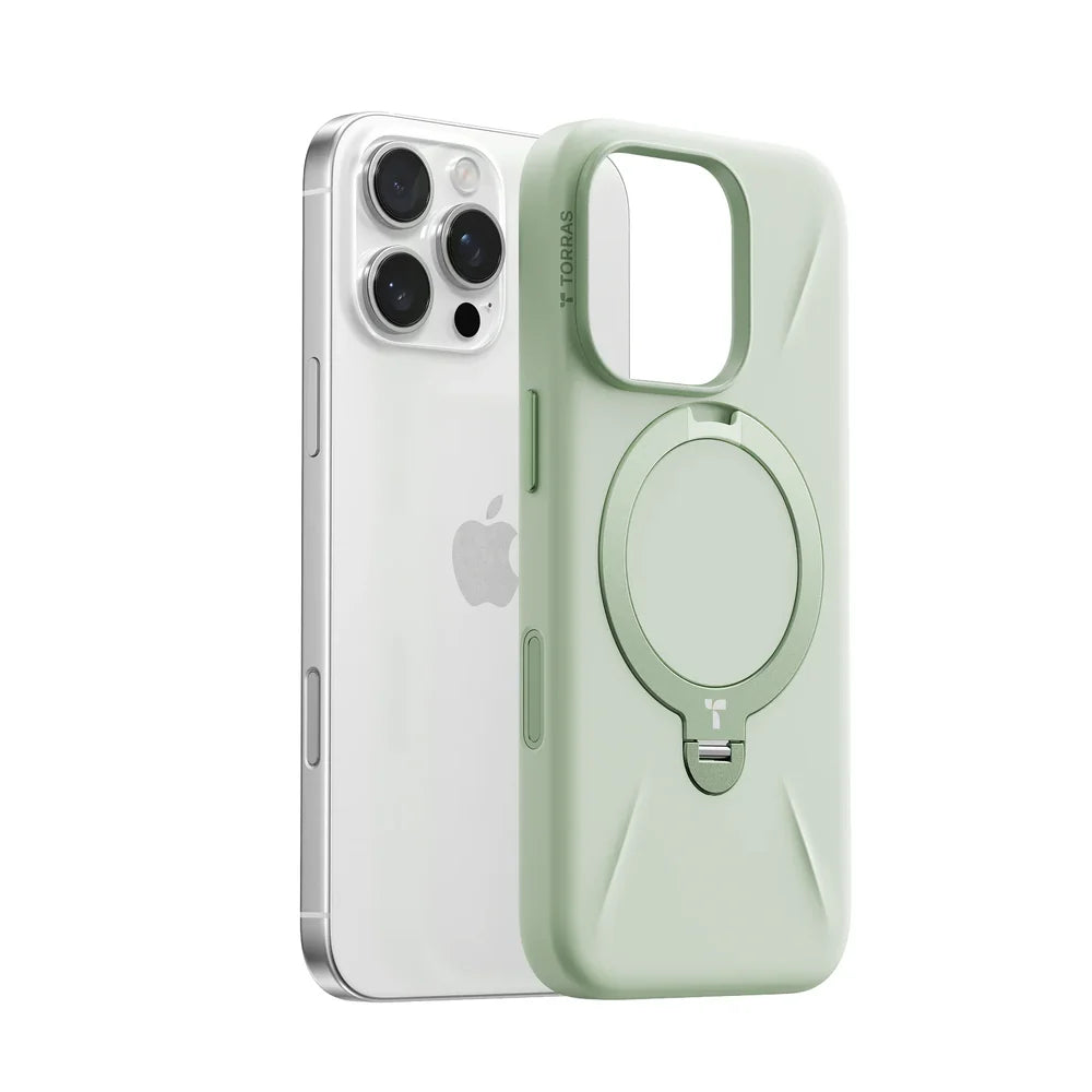 スタンド内蔵の強力マグネットが、MagSafeアクセサリーとの親和性を高めます。モバイルバッテリーも、しっかりと固定。