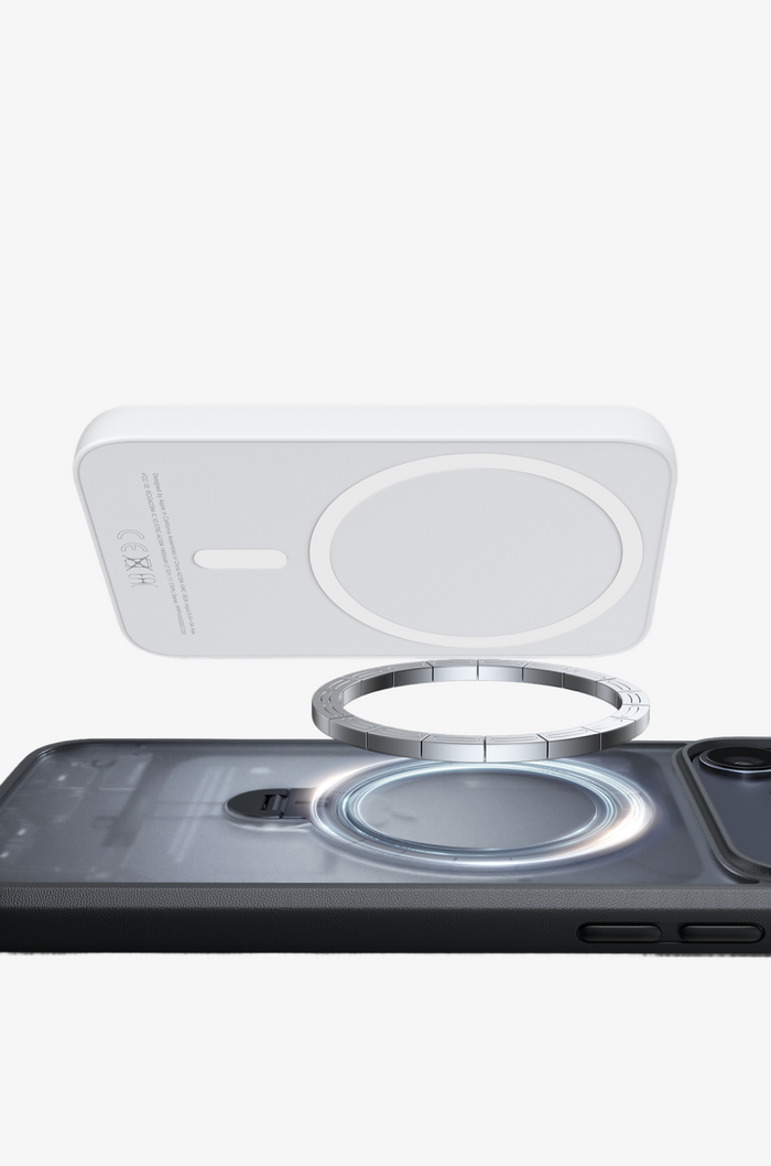 スタンド内蔵の強力マグネットが、MagSafeアクセサリーとの親和性を高めます。モバイルバッテリーやカードケースも、しっかりと固定。