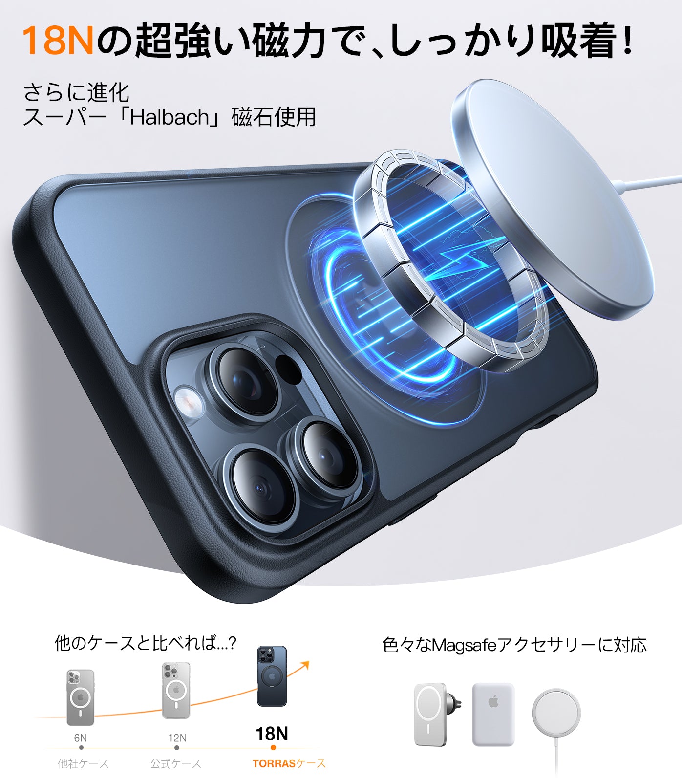 - N52マグネット使用、18N磁力で落ちる心配がない。