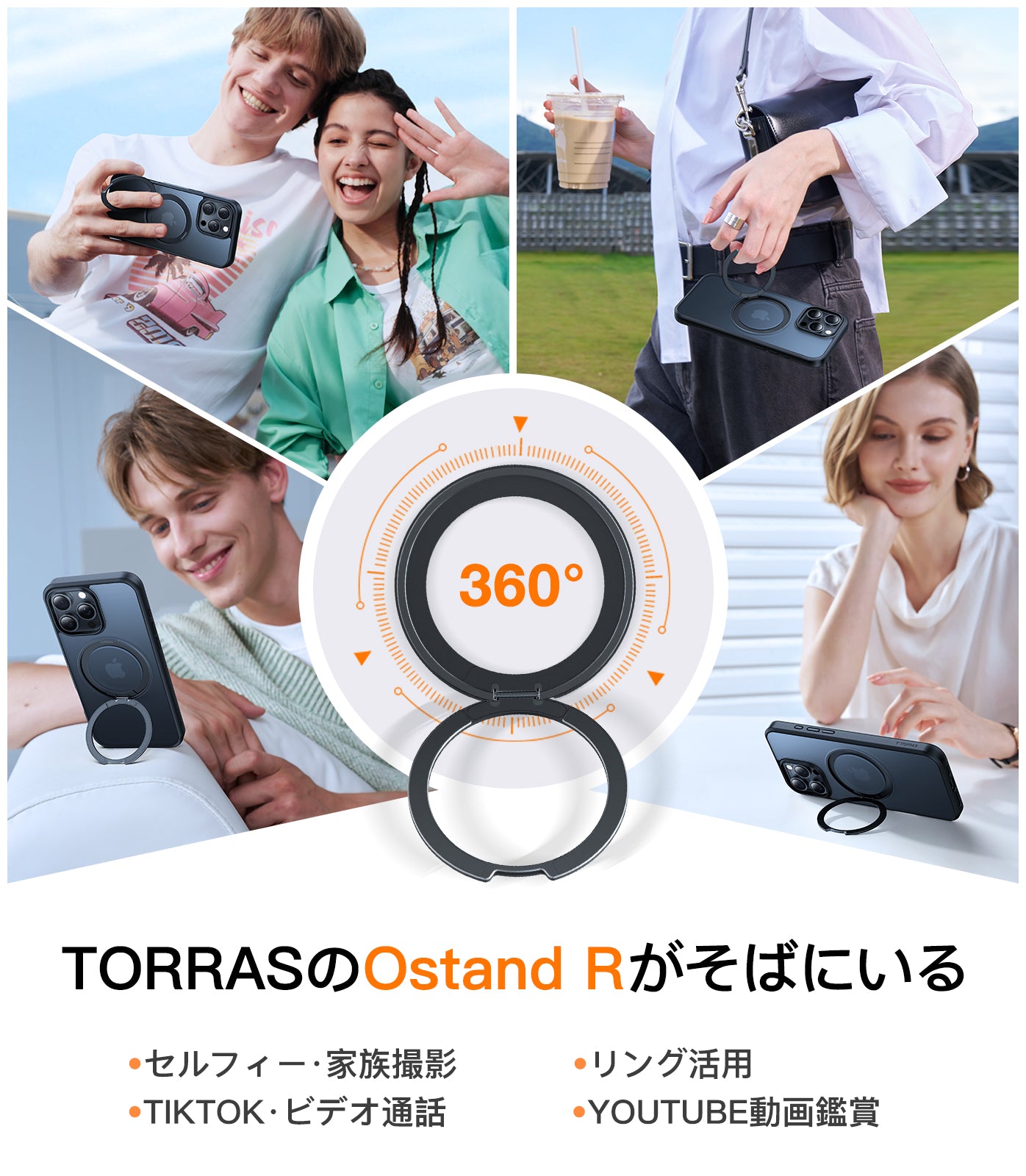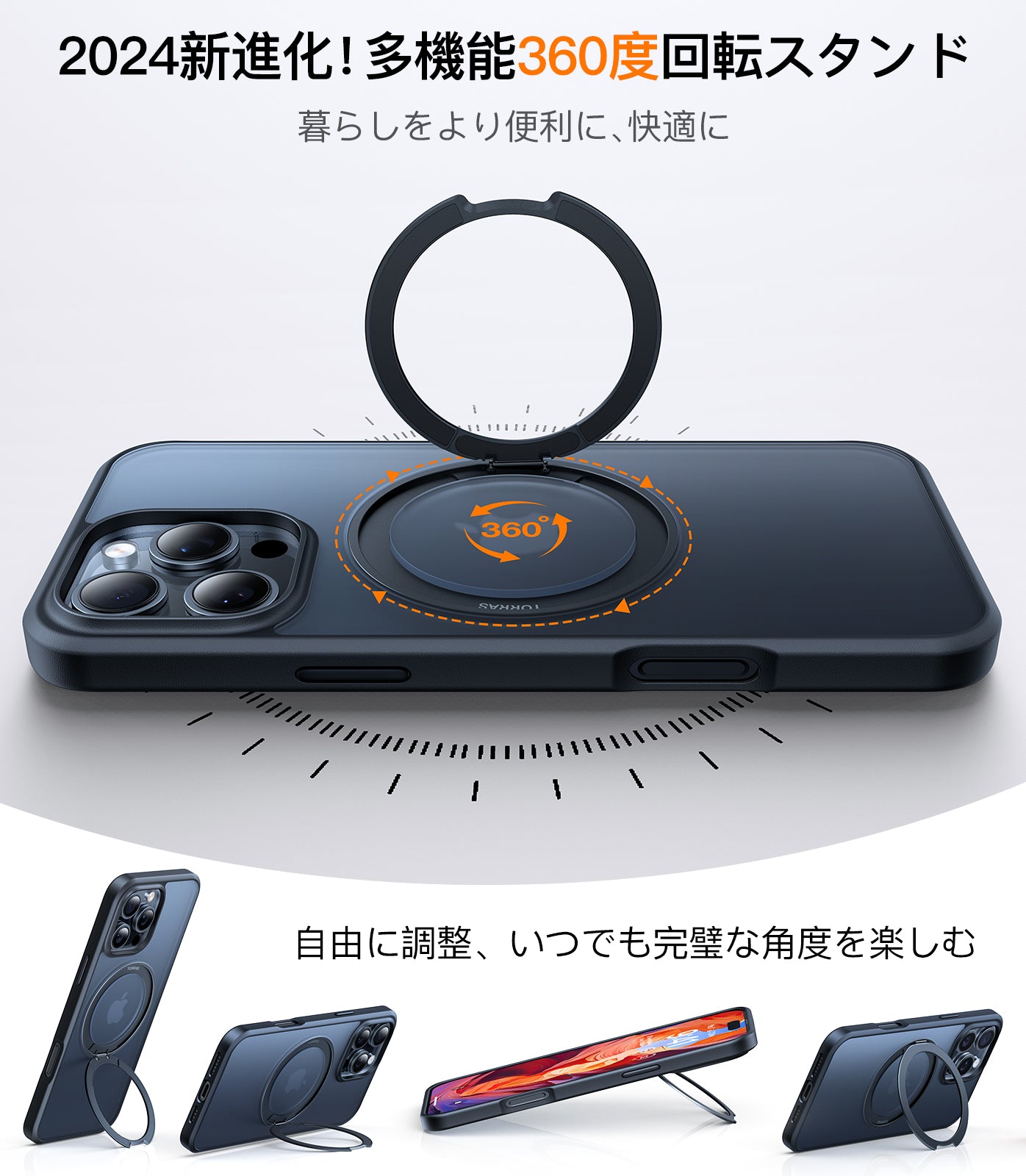 - 多角度固定で撮影が安定、iPhone 16の感圧式カメラ操作を指先でスムーズに調整可能。