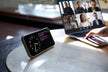 画面の照り返しを防ぐ調整可能な角度で横向きに使用。