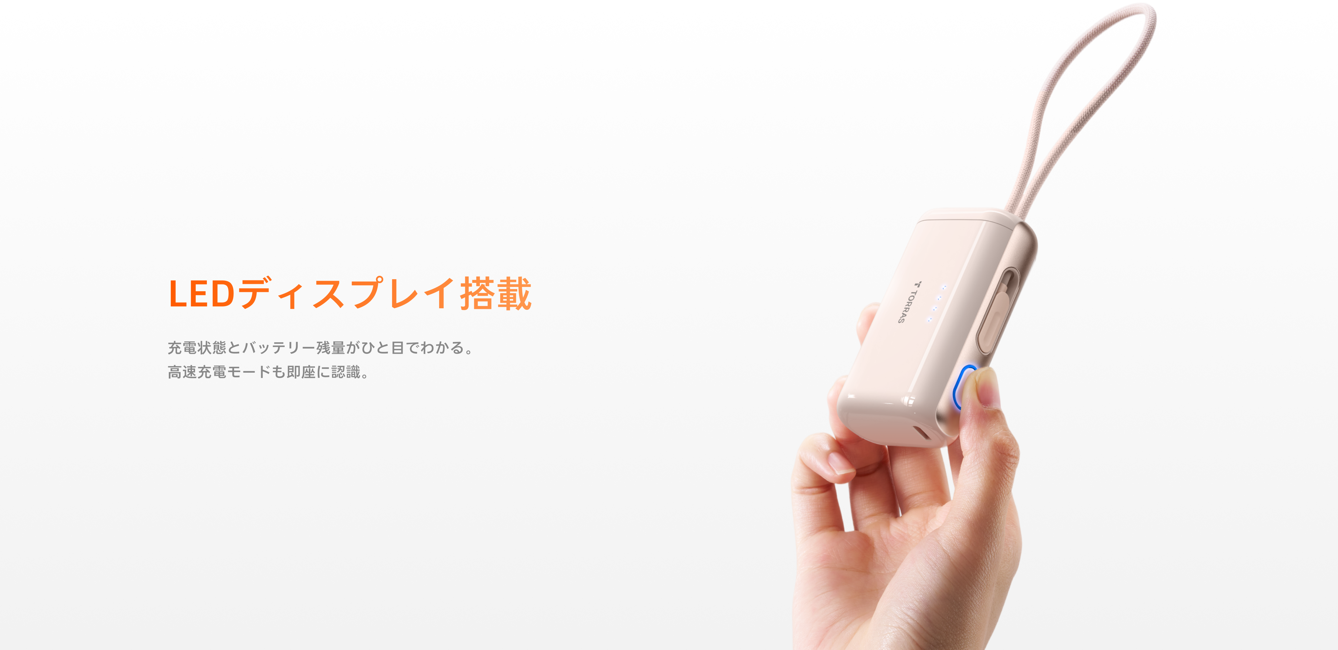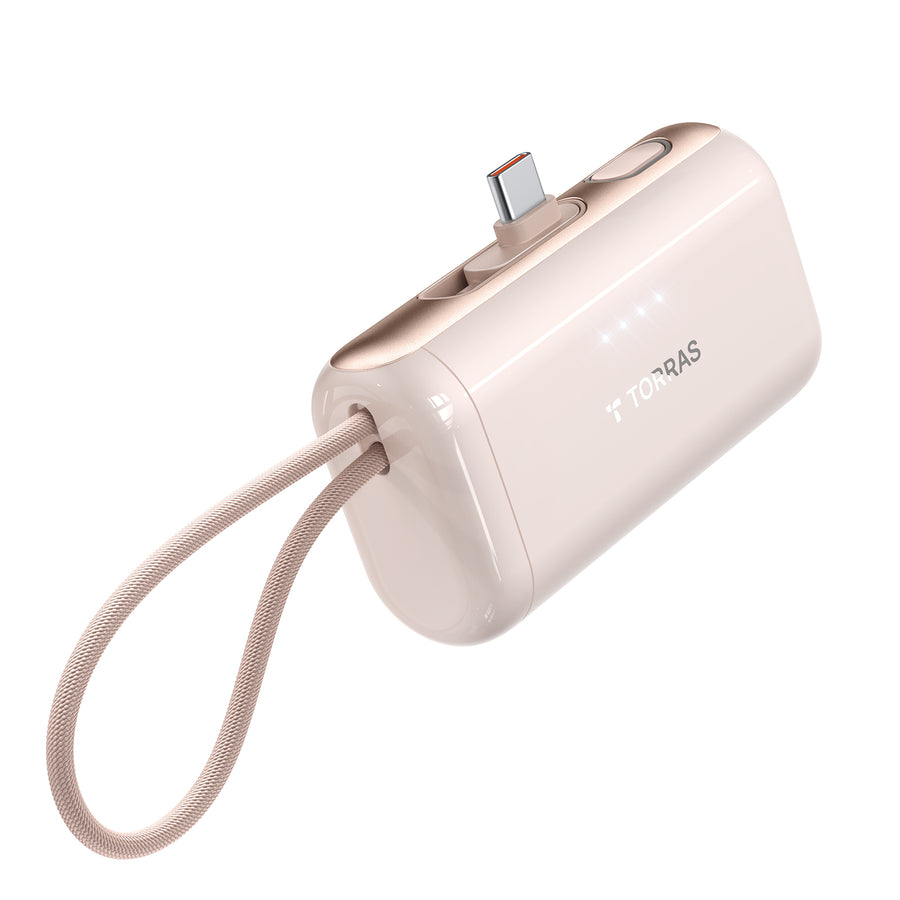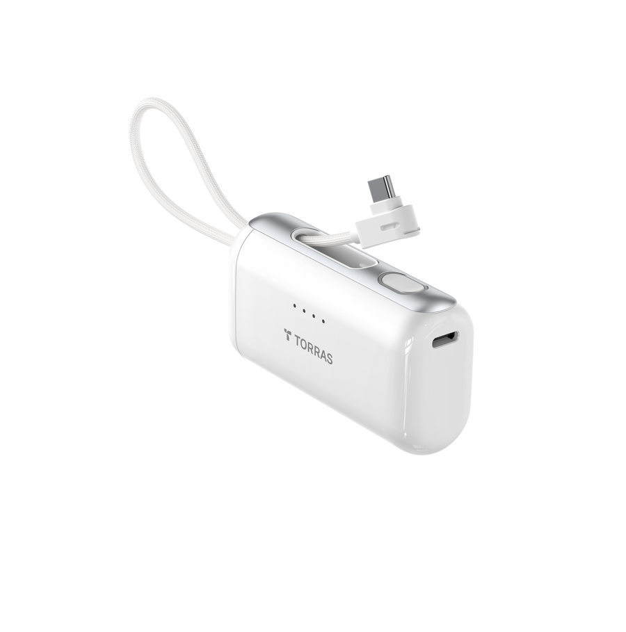 - 内蔵のType-Cケーブルで、スマホにすぐ接続して充電可能。本体も簡単に充電でき、ケーブル不要で手間が省けます。
