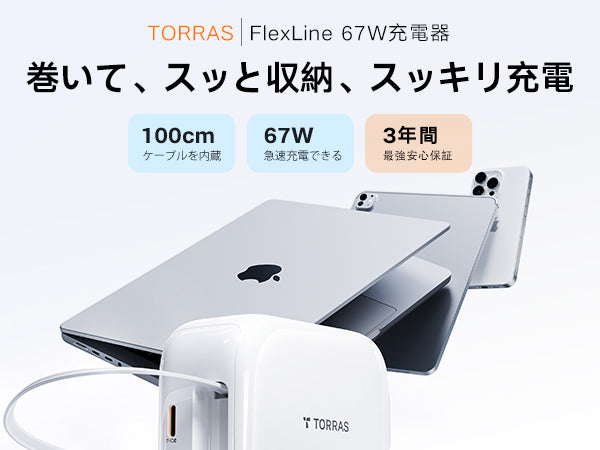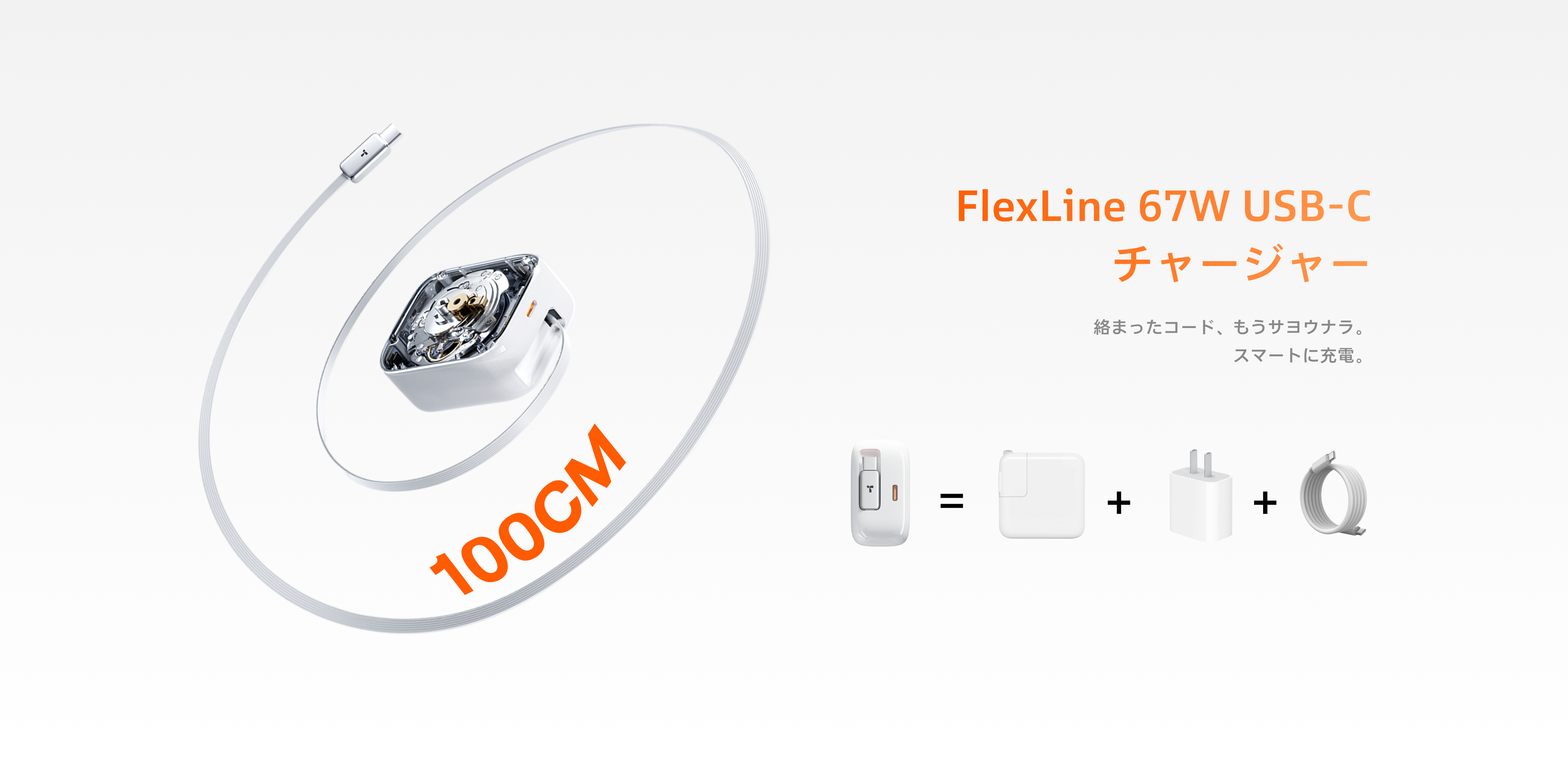 FlexLine 67W type-c 2ポート急速充電器(1m巻き取り式)