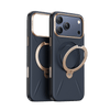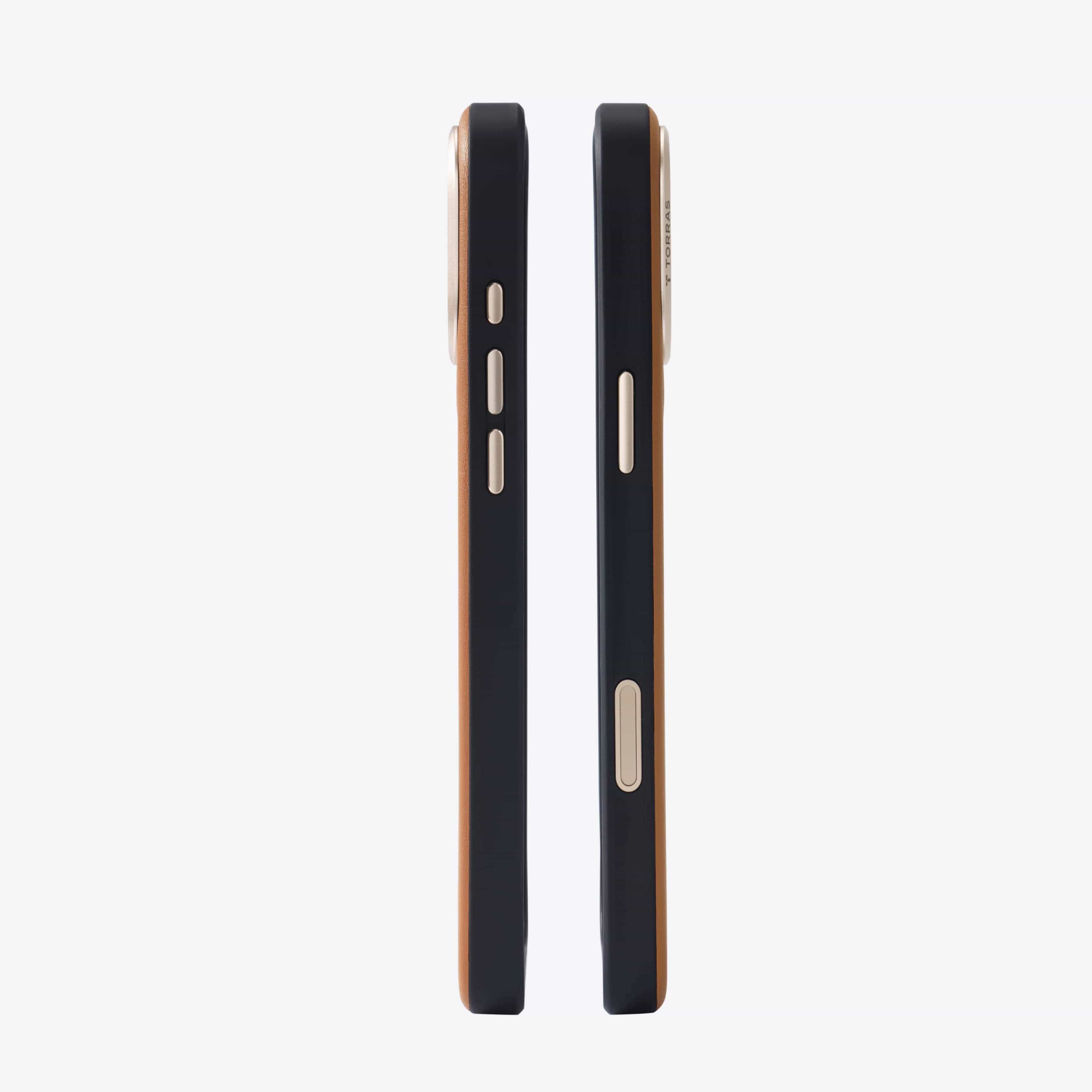 - 光沢アルミボタンと皮革風シリコンレザーで高級感を実現。